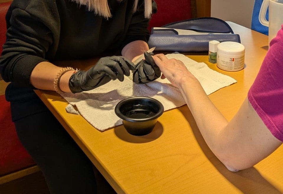 In der Vorweihnachtszeit haben sich die Meraner Friseurlehrlinge im dritten Ausbildungsjahr gemeinsam mit ihrer Fachlehrperson Marion Staffler ein besonderes Adventsgeschenk ausgedacht: die Hand- und Nagelpflege als besonderes Programmhighlight im Tagesclub Meran.