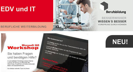 Weiterbildungskurse 01.02.2023 | News | Schuljahr 2022/2023 Workshop Microsoft 365 Dokumente zum Herunterladen Microsoft 365 Workshop 2023.pdf (299 KB) »