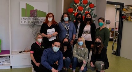 Schüler*innen der Landesberufsschule Luis Zuegg geben in einem eigenen Workshop Einblick in die Schaufenstergestaltung. Mitarbeiterinnen des Eltern- Kind-Zentrum Lana und Eppan profitieren von der guten Ausbildung der Schüler*innen.
